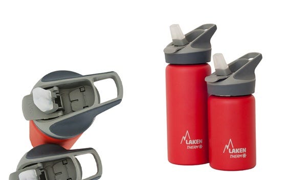 I discovered bottles made by a company called Laken. They make a variety of bottles that are insulated, stainless steel, with a silicon spout. Bottles are made in Spain.