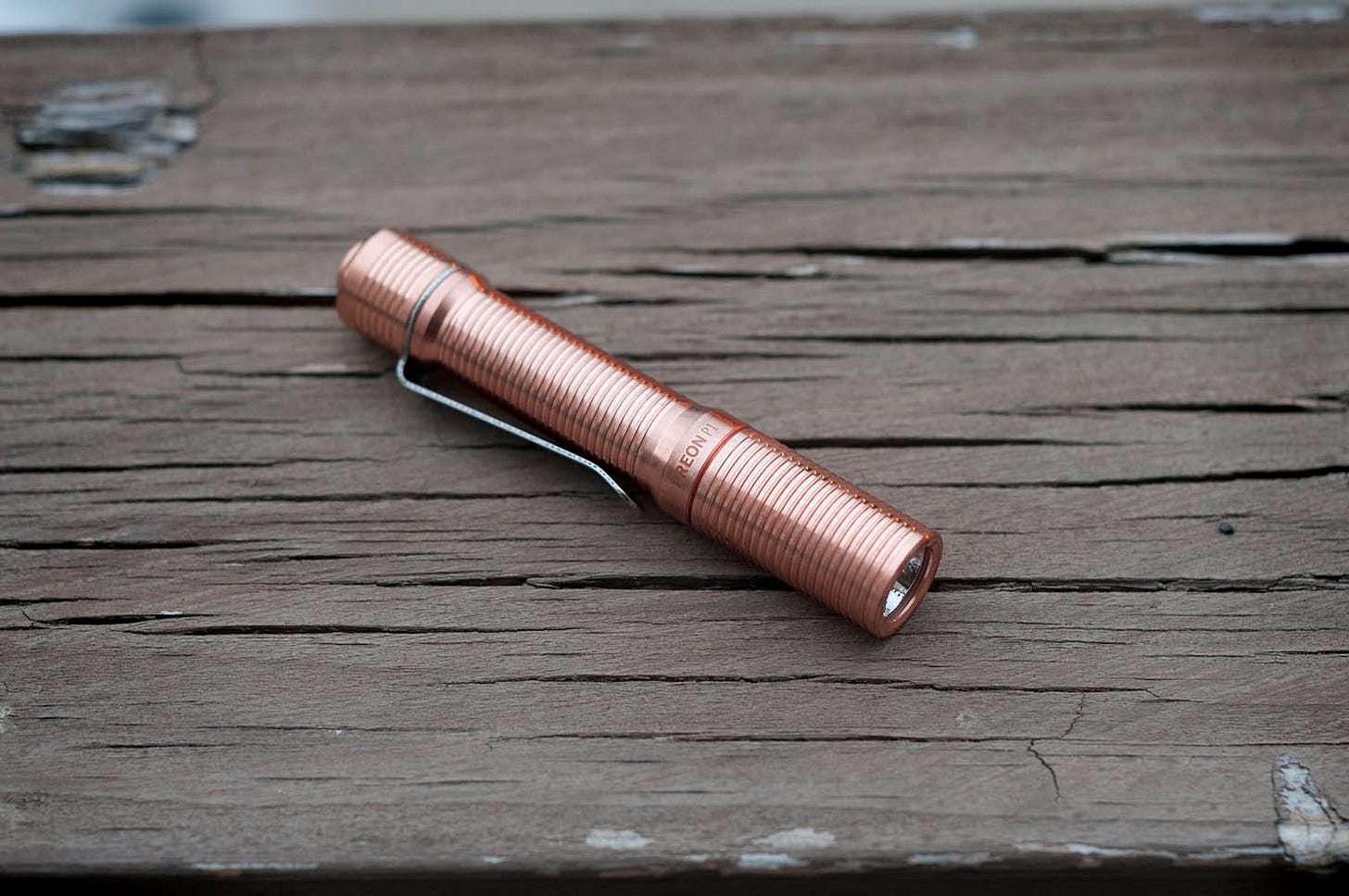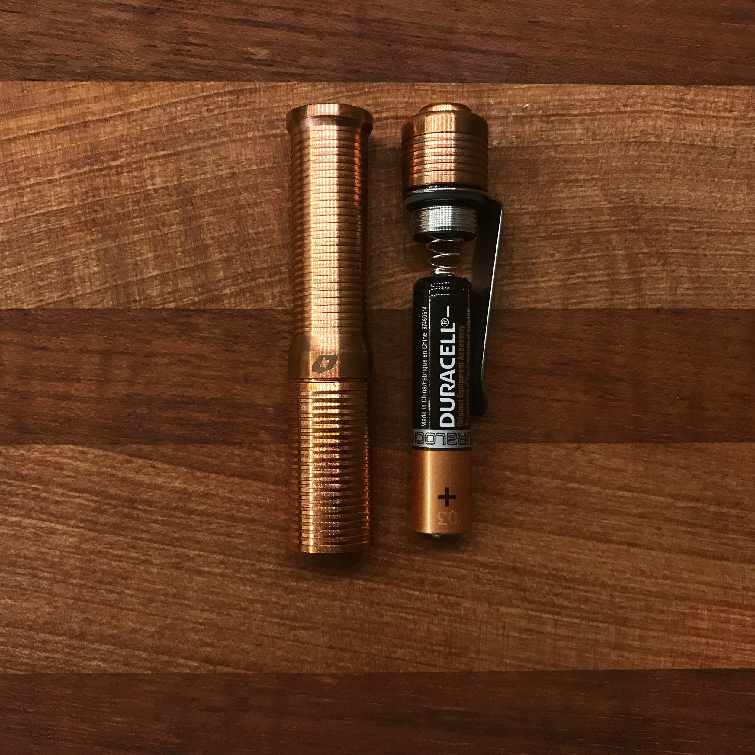 Preon P1 Copper - AAA flash light. I love this light as it's small, fits in a pocket and is good for travel. For Christmas I got the kids their own as stocking stuffers in Blue and Black. You can also find it in a taller "pen" like size with two AAA batteries, called the Prion P1. 100 lumens / 1h runtime