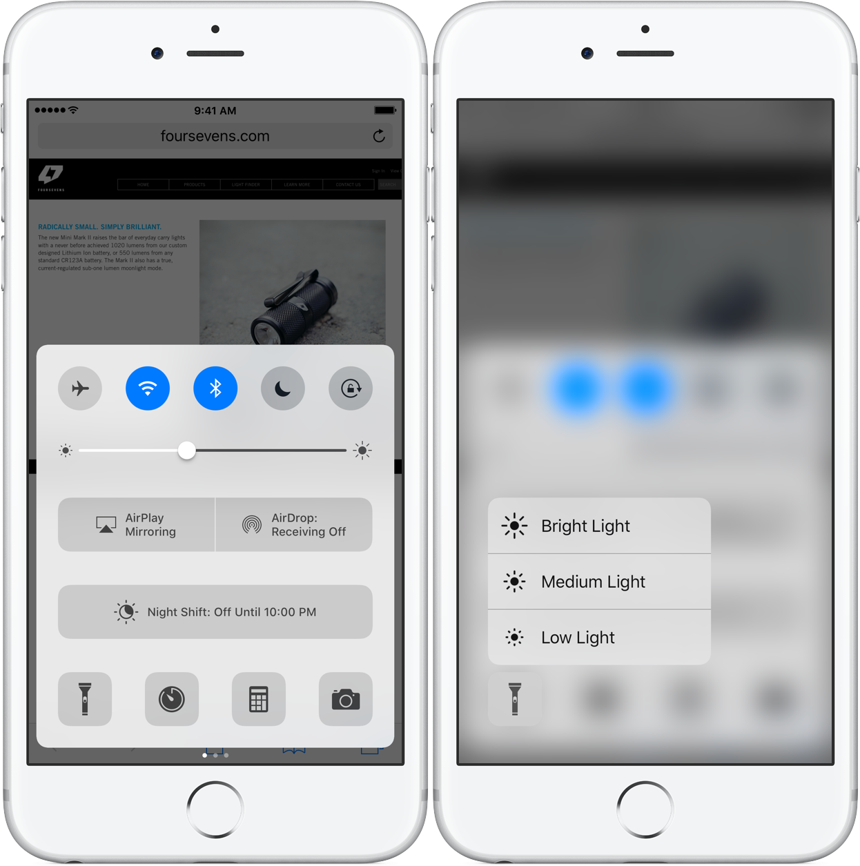 Foursevens Quark Smart QSL-X - This is a blue tooth flashlight, and has a corresponding iPhone app to configure and control it. This flashlight also lacks a clip. I don't love it. 350 lumens / 1.5h runtime