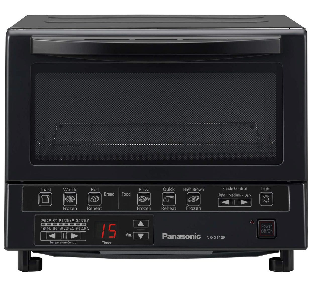 Panasonic FlashXpress G110P compact toaster oven technology featuring double infrared ray heater for cooking up to 40% faster than conventional toaster ovens, instant heat eliminates preheating.