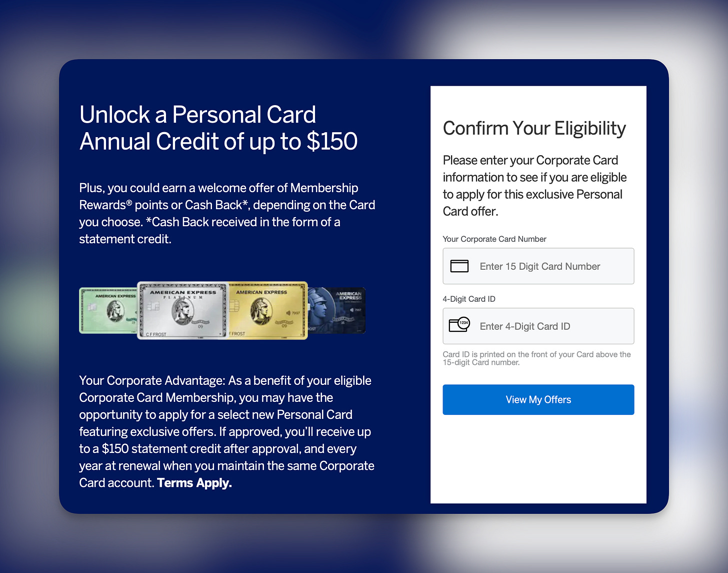 $150 Corporate Card Credit